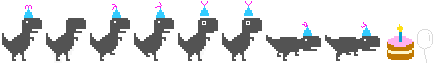 Click the button above to join the birthday run! Guide your T-Rex through the festive desert, grab cakes to wear a party hat, and keep an eye on the balloons drifting past as you chase a new high score.